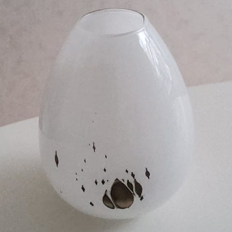 Hyväkuntoinen Nuutajärvi Fortuna lasimaljakko, ei halkeamia tai lohkeamia, suunnittelija Björn Weckström. Korkeus n. 10cm.