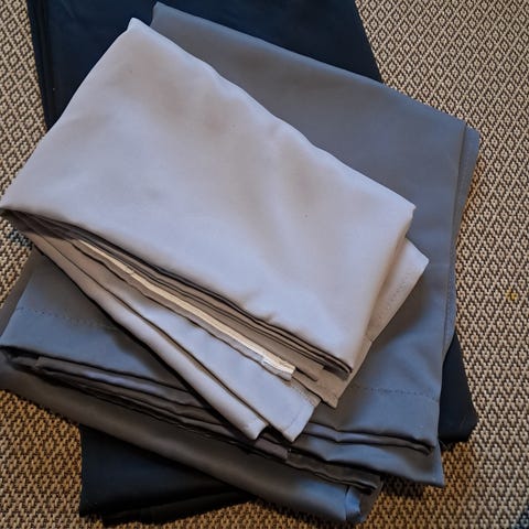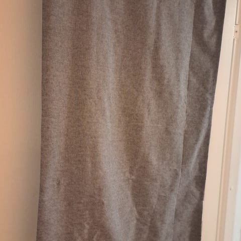 Ryhdikkäästä kankaasta valmistetut pimennysverhot. Väri hiekanvärinen.