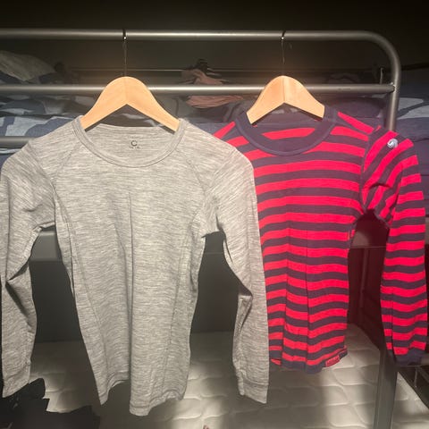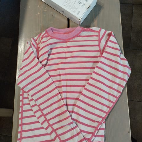 Muuten hyvä kuntoinen merinovilla kerrasto, mutta reikiä paidassa edessä ja hihansuissa. Liekö Koiperhonen päässyt kesällä herkutelemaan, kun ei ollut suojattuna muovipussiin. Housut ehjät. Myynnissä Marjalassa.