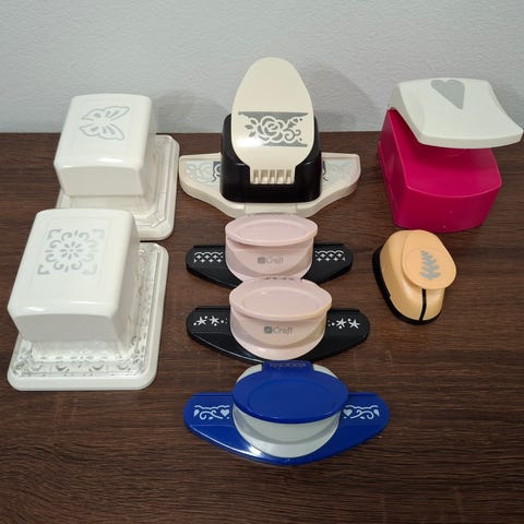 Myydään isot paperilävistimet. Perhoskuviosta saattaa yksi pieni kohta jäädä leikkautumatta, mutta se on helppo napsaista pienillä saksilla. Muuten hyväkuntoiset.