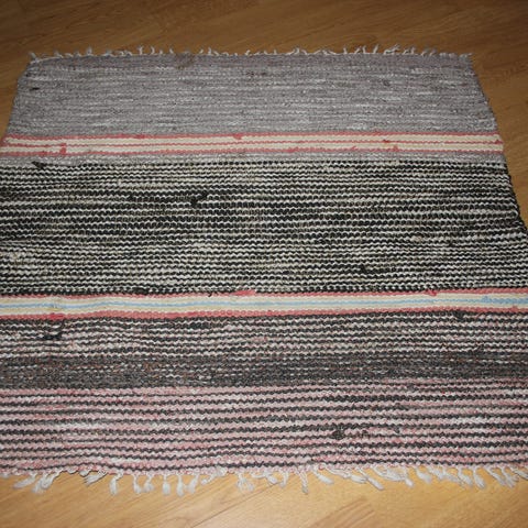 Karvalankamatto. 1950-luku. Koko 220 x 156 cm. Valmistaja Vaasan Mattokutomo ja suunnittelija luultavasti Aappo Härkönen. Vastaava myyty Bukowskis huutokaupassa. Tummanharmaata ja viininpunaista 100% villaa. Matto on damastikudottu eli värit ovat toisella puolella vastakkaiset. Todella siistikuntoinen, hajuton ja ehjä.