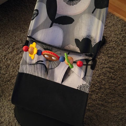 Babybjörn sitteri harmaassa ja vihreässä värissä. Mukana myös lelu, joka voidaan kiinnittää sitterin reunaan. Siistikuntoiset, juuri pestyt päälliset.