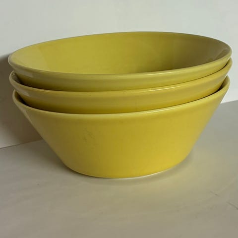 Arabia Teema kulhot, 3 kappaletta, väriltään keltainen. Kulhojen halkaisija noin 15 cm.