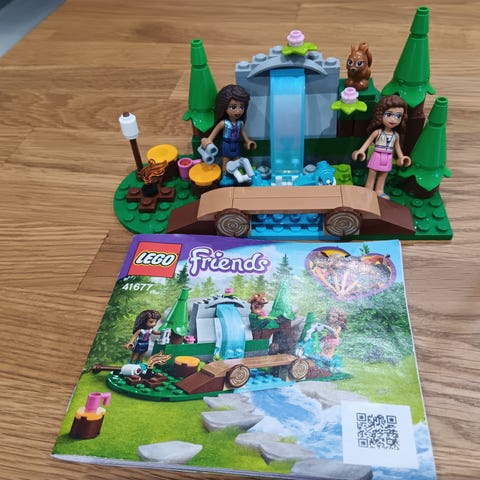 LEGO Friends 41677 Metsän Vesiputous leikkisetti. Setissä on vesiputous, puinen silta, puita ja hahmoja. Sopii lasten leikkeihin ja rakenteluun. Kaikki osat tallella ohjekirjaa myöten. Siisti ja ehjä.