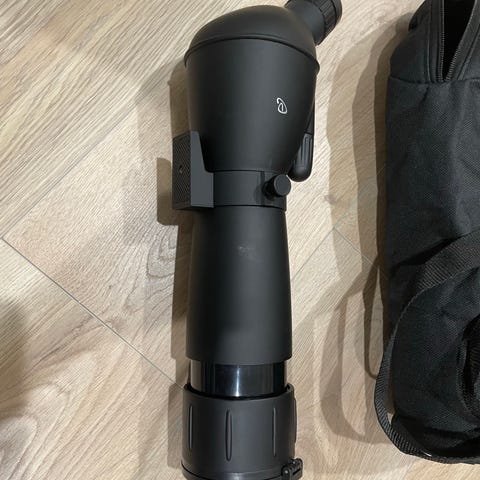 Bresser Spotting Scope 20-60x60 kiikari, jossa säädettävä suurennos 20-60x ja objektiivin halkaisija 60 mm. Kiikari on musta ja varustettu jalustalla. Sopii tarkkailuun ja ulkoilukäyttöön. Pidike kännykälle kuvausta varten.