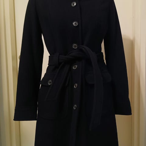 Tommy Hilfiger pitkä takki naisille, koko S. Takki on tummansininen. Malliltaan klassinen pitkä takki, sopii viileämmille ilmoille. Ei juurikaan käytetty, jäänyt ainakin 5 vuodeksi kaappiin säilytykseen. Takki on ennen säilytystä harjattu. Takissa on suora leikkaus, mitat näkyy kuvissa.