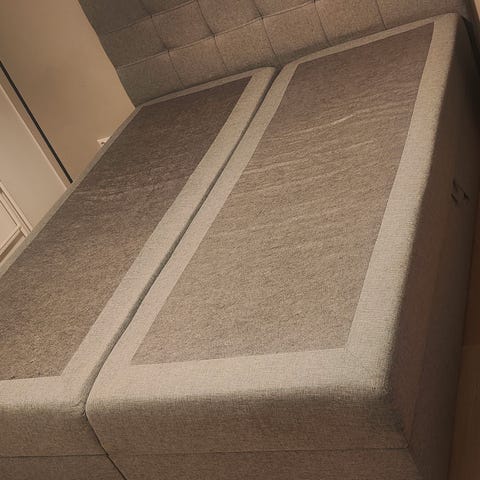 Sänky 160cm levee (2kpl 80cm leveitä runkoja). Patja mukana. Päällinen irroitettava ja pystyy pestä. Mukaan myös runkojen väliin "tasoituspala." Vain nouto ja maksuna käteinen!