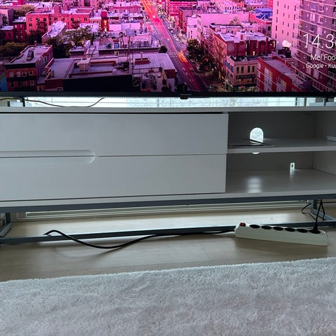 Elämää nähnyt ja hyvin palvellut vintage tv taso pyörillä. Pyörät toimii ja on todella tukeva.