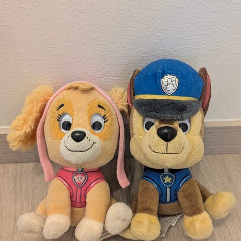 Ryhmä Hau pehmolelut, Vainu n 45cm ja Kaja vähän pienempi. Kaja on selkäreppu, vatsassa vetoketju ja pieni tila aarteille. Hinta yhteensä.
