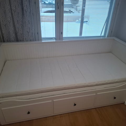 Todella siistikuntoinen Ikea Hemnes. Ollut meillä vierashuoneessa ja nukuttu muutaman yön vuodessa Jouluisin yms. Ei kovin vanha mutta ostovuotta en muista.