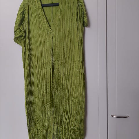 Myydään pitkä pliseerattu kesäinen mekko. Mekkoa on käytetty vähän. Mekossa on vuori. Pituus 140, vuorikankaan vyötärö 100cm