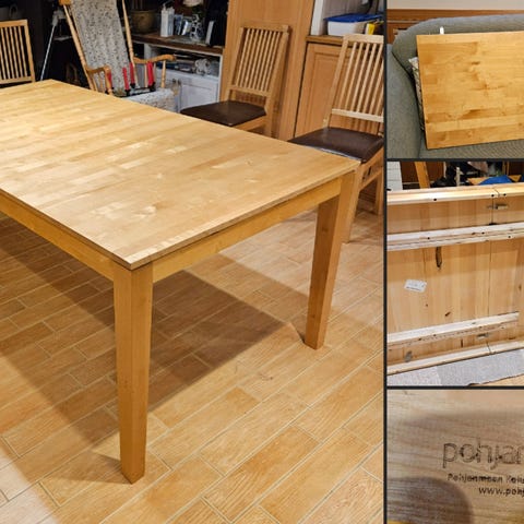 Hakusanat: keittiö, keittiöpöytä, ruoka, ruokailu, taso, keittiön, huonekalu, huonekalut, Valmistaja, käytetyt huonekalut, vaalea puu, mustat jalat, pöytä, pöydät, ruokapöytä