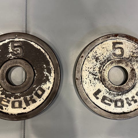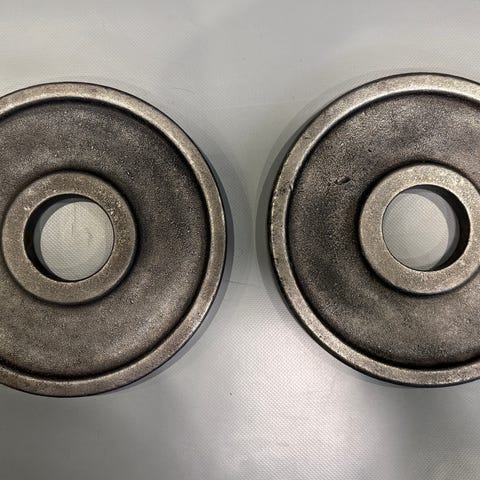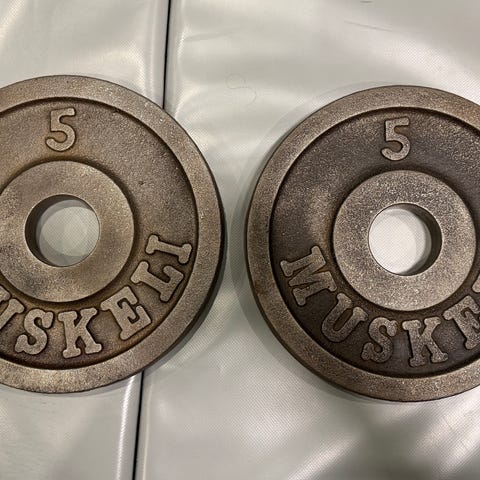 Muskeli painolevyt, paino 1,25 kg kappaleelta. Metalliset levyt. Keskireikä 50mm.