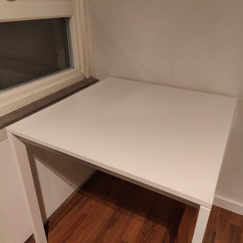 Myynnissä Ikean Melltorp-mallin pöytä. Tukevat metallijalat. Pientä käytön jälkeä.
