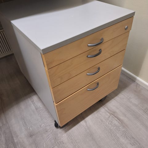 Koulupöytä 4-laatikolla , leveys 110cm , syvyys 60cm ja korkeus 76cm.