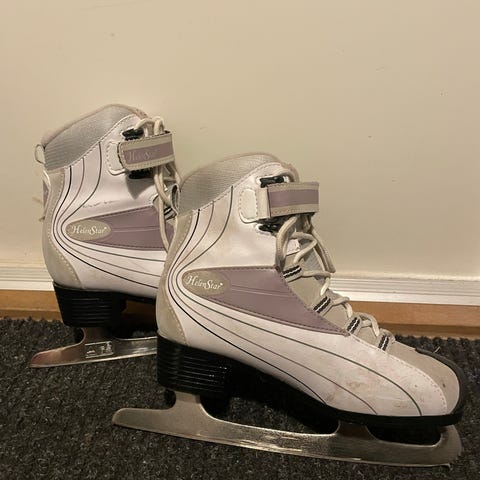 Helen luistimet koko 38, väri valkoinen. Mukaan myös hyvät suojat, väri pinkki. Soveltuvat kaunoluisteluun.