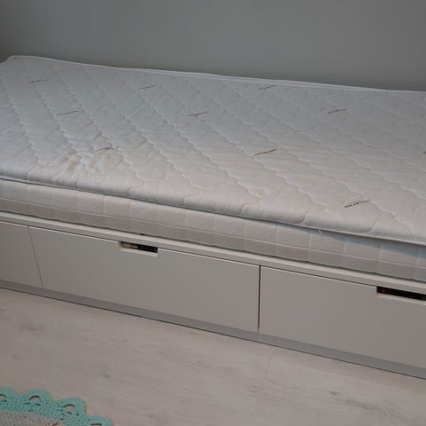Hyväkuntoinen 3 laatikolla oleva musta sängyn runko. IKEA Nordli mallisto. Ovh 349€. Valmiiksi koottuna.