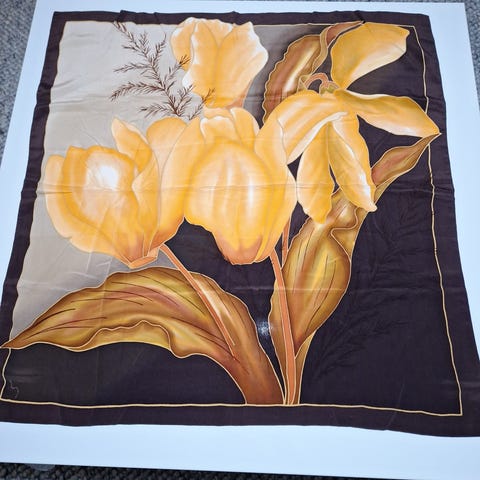 Suuri silkkihuivi, pöllökuosi, 100% silkkiä
