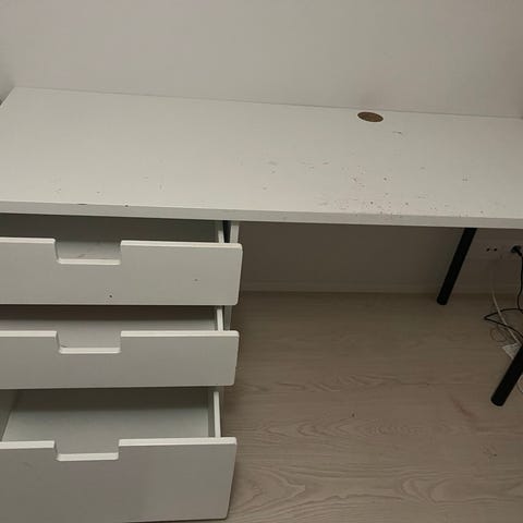 Ikean työpöytäkokonaisuus. Kaksi laatikostoa, kaappi ja työtaso. Kunto erinomainen.