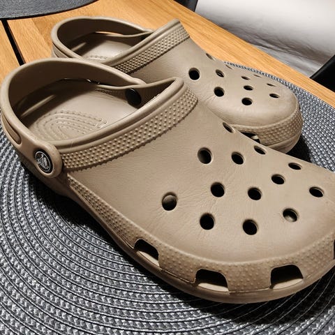 Crocs Classic geometric clog, aivan uudet ja laput vielä kiinni, super mukavat jalkaan, kaupoissa jo loppuun myyty malli. Mulle liian suuret, tässä Crocsin mallissa ei kokolapun koot pidä tunnetusti paikkaansa joiden mukaan koko olisi 39-40 mutta mulle on numeroa liian suuret eli merkkasin siksi kokonumeroksi 41 joka lähempänä totuutta mutta 40,5 jalan koon omaavalle myös varmaan hyvät. Leveä lesti. Kokolapussa siis lukee M6/W7