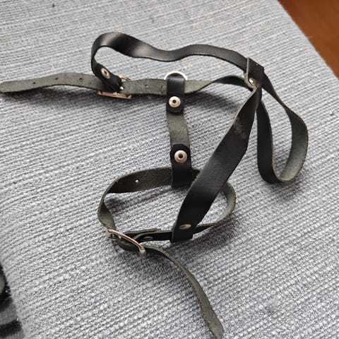 Valkoiset kissan valjaat, käytetty 3-4kg kissalla