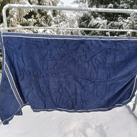 Myydään hyväkuntoinen Finntackin vanhempaa mallistoa oleva kuivatusloimi koko 145. Materiaali villasekoitetta. Edessä kaksi solkea, ristivyöt mahavöinä ja häntäremmi. Ollut käytössä vain kilpailuissa ja kopissa. Pestään ennen myyntiä. Postit ostajalle.