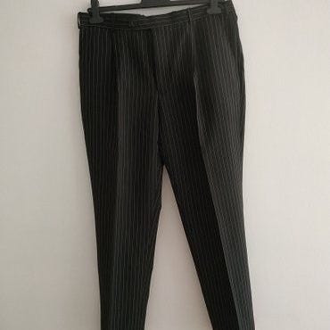 miesten klassiset suoralahkeiset housut. Koko: 50-52. Housujen vyötärön leveys n.80cm, lahkeen sisäpituus n.76cm. Väri: Mustat ja tummat liituraitahousut. Hinta 10e/kpl. Nouto