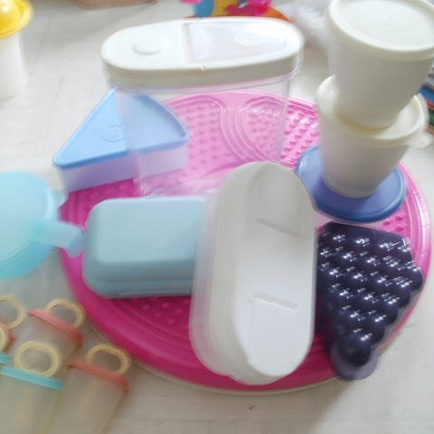 Mintun väriset metallikorit käyttämättömät, samoin siniset muovilaatikot. Punaisissa laatikoissa käytön jälkiä, mutta ovat ihan siistit ja ehjät. Peltipurkit myös hyvässä kunnossa, tosin yhdestä puuttuu kansi. Lähes kaikki näistä Ikeaa.