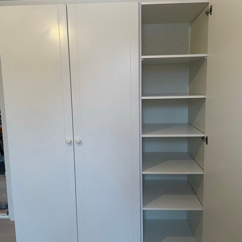 Valkoinen kaappi jossa muutama hylly