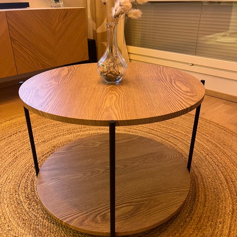 Sohvapöytä. Koko 68 x 56cm, korkeus 45,5cm. Käytönjälkiäkin hieman löytyy. En varaile enään mitään.