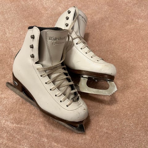 Riedell pearl luistimet koko 2. Noin 32 jalkaan. Pohjan mitta 208 mm. Ostettu käytettynä ja huollettuna luistinkaupasta ja ollut kahdella lapsella koululuisteluissa. Vain nouto.