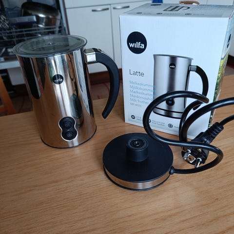 Sähköinen maidonvaahdotin, joka ollut käytössä noin vuoden ajan. Toimii moitteettomasti.