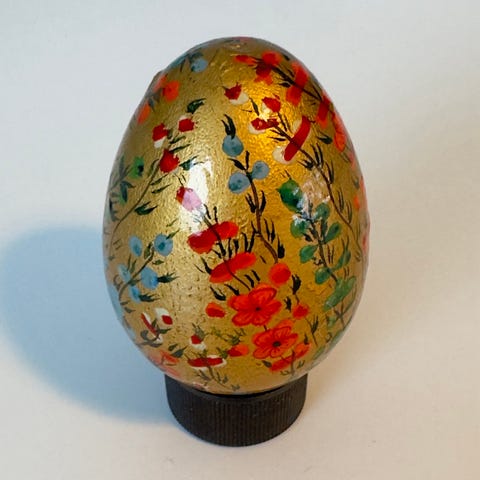 Violetti metallinen avattava koristemuna / pääsiäismuna, 8 cm x 10 cm x 13 cm