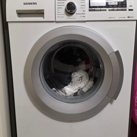 Hyvässä 6 kg:n pesukoneessa on muutama naarmu kyljessä.