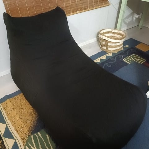 Myydään Billebeinon säkkituoli ja jalkarahi. Säkkituolissa on kantokahva. Jalkarahiin on tullut korjausta vaativa reikä, ommellaan pyydettäessä uudelleen kiinni. Säkkituoli on uutta vastaavassa kunnossa. Säkkituolin paino 5,1 kg, jalkatuki 0,9 kg.