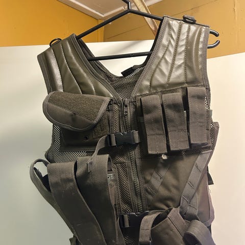 Myydään musta taisteluliivi. Saa tarvittaessa kysellä tarkempia mittoja.