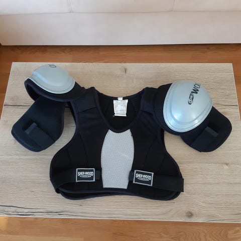 Myydään lasten jääkiekko rintapanssari. Hyvässä kunnossa. Koko näkyy kuvasta.