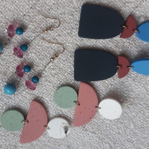 Kahdet pitämättömät ja yhdet vähän käytetyt korvakorut.