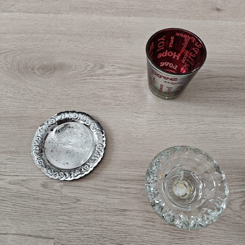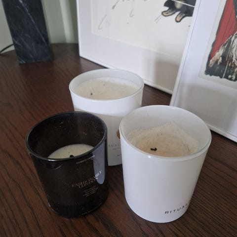 Tuoksukynttilöitä ja kaksi rustiikkikynttilää