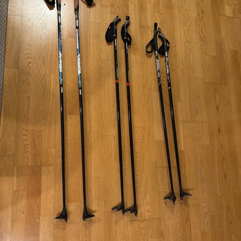 115cm pitkät sauvat. Hyvät remmit ja kahva korkkia.