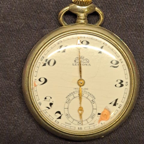 Tosi pieni Leijona merkkinen kullattu tasku kello.