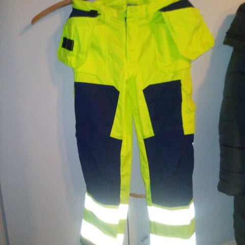 Työtakki, koko S, riipputaskuhousut, koko 52. Lahkeen sisäpuolen pituus n. 63 cm. Kummatkin uusia, käyttämättömiä, odottavat uutta innokasta tekijää. Hinta yht. 40€, voin myydä myös erikseen. Postikulut maksaa ostaja.