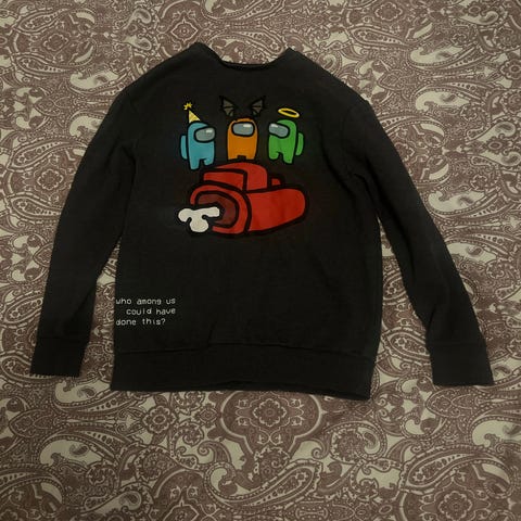 Lindexistä ostettu among us collegepaita. Koko 134/140. Printissä pienesti kulumaa. Hajusteeton pesu. Siisti käytetty. Katso myös muut kohteeni.