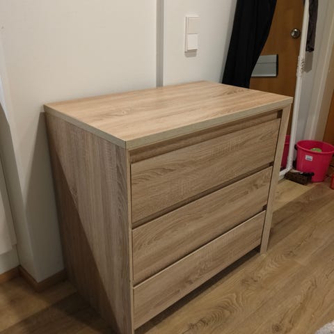 Lipasto kolmella laatikolla. Toiminut mallikappaleena eli on hyvässä kunnossa.