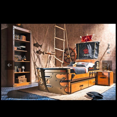 Black Pirate lasten sänky säilytystilalla ja kirjahyllyllä