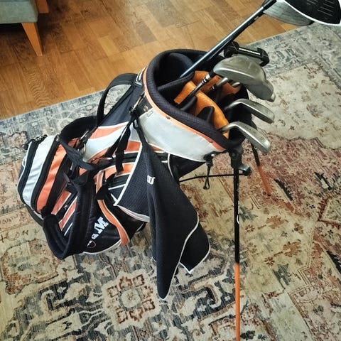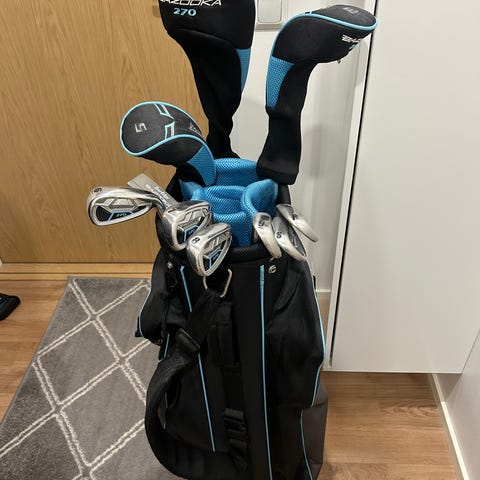 Siisti ja ok kuntoinen golfmailat + golfbag. Aloittelijasetti ja sopii hyvin esimerkiksi ensimmäiselle kesälle pelaamiseen.