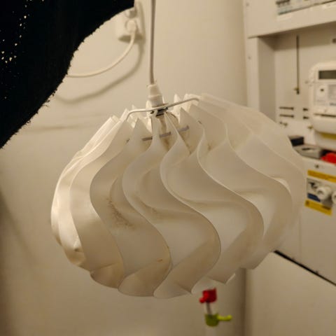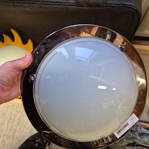Ehjä kattovalaisin, jossa on metallinen kehys ja valkoinen lasikupu.