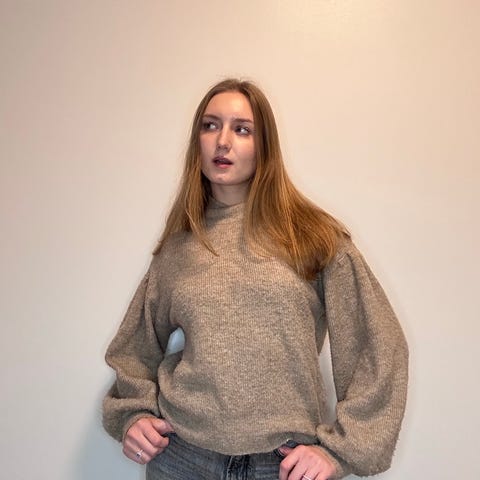InWear neulepusero naisille, koko XS. Valmistettu villasta 34 %, mohairista 34 %, polyamidista 27 % ja elastaanista 5 %, vaaleanruskean sävyinen. Pehmeä ja lämmin materiaali sopii viileämpiin olosuhteisiin. Sivuhalkiot helmassa molemmin puolin.