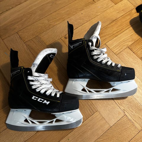 Jääkiekkoluistimet lasten koko 36. Musta ja harmaa väri, keltaiset nauhat. Soveltuvat jääkiekkokäyttöön.
