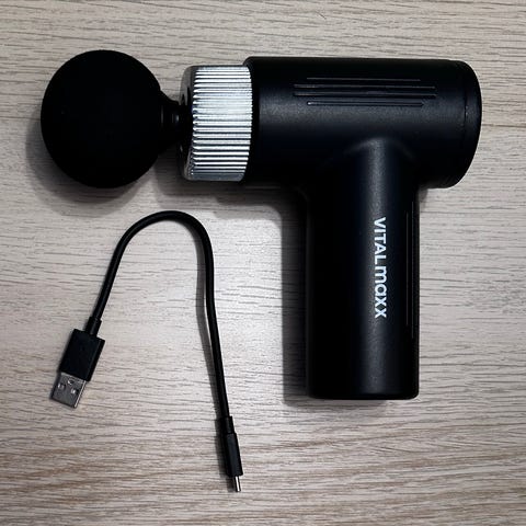 React Massage Gun lihashuoltovasara sisältää useita vaihdettavia päitä lihashuoltoon. Laite on suunniteltu lihasten rentouttamiseen ja palautumiseen. Akku huono, toimii vain hetken, mutta verkkovirrassa toimii hyvin.